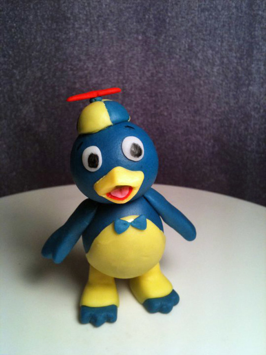 The birthday boy's favorite character is Pablo, so he's the star of this cake. All decor is fondant except the royal icing grass.