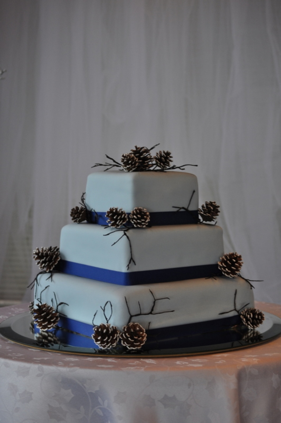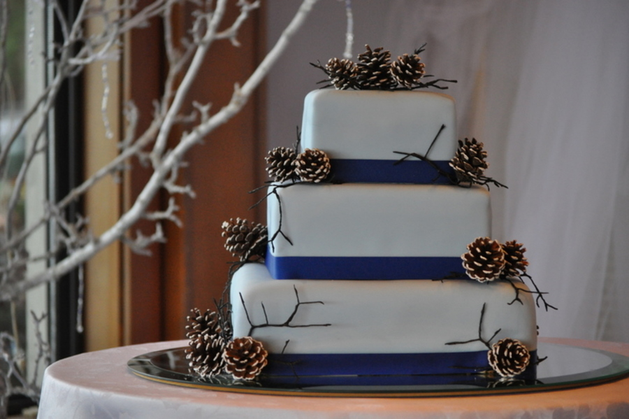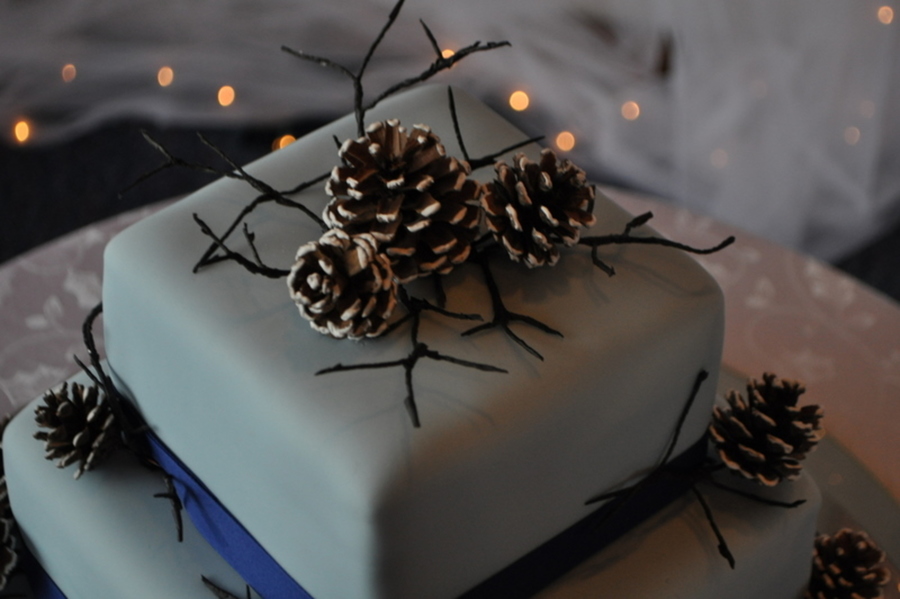The bride that this cake was made for brought me a picture of what she wanted her cake to look like. She actually found it here on CC. Thank you to LyndaOlsen for the inspiration and the additional tips on coloring the fondant and the twigs. I am really pleased with the outcome.