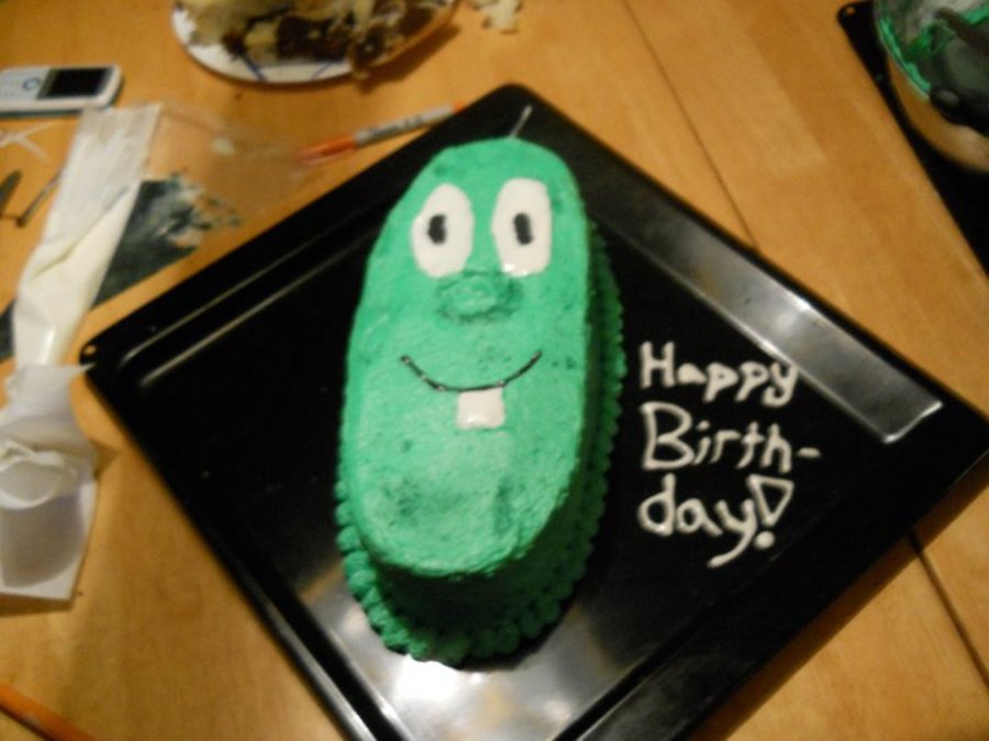 This was my first cake order. It was a surprise cake for a guy who LOVES larry from veggie tales.