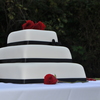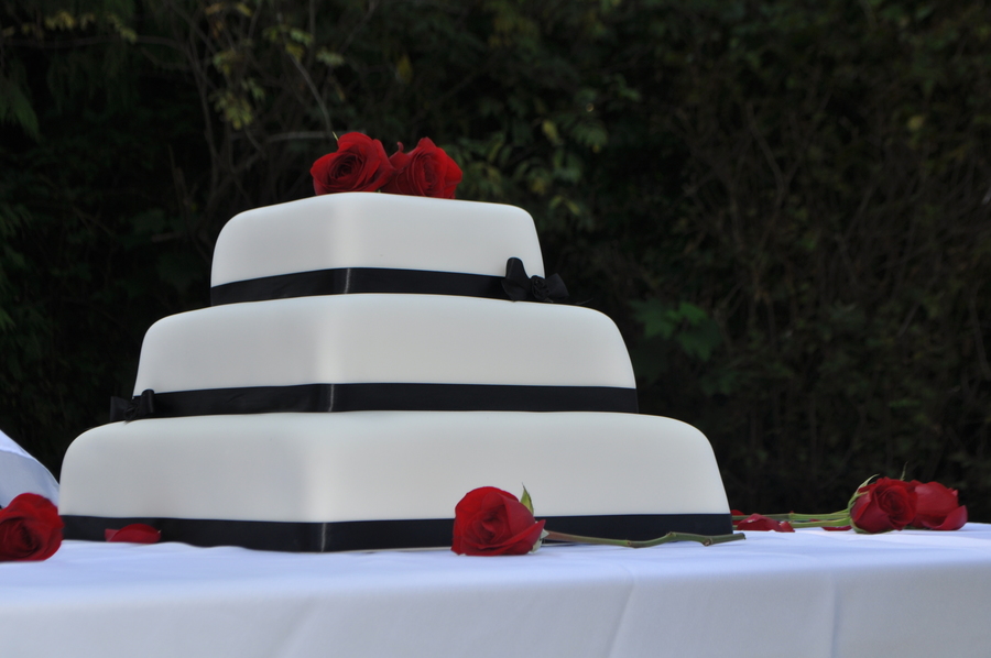 This is my first wedding cake. I made it for my husband's cousin. Yes it is a very simple cake, but it was absolutely perfect for her elegant outdoor wedding.