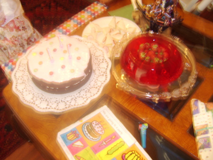 Had promised my daughter to make her exactly the same cake that was in her favourite book. Thanks God it was a very easy one and we had only what was in the book, like sweets, jelly, sandwiches etc