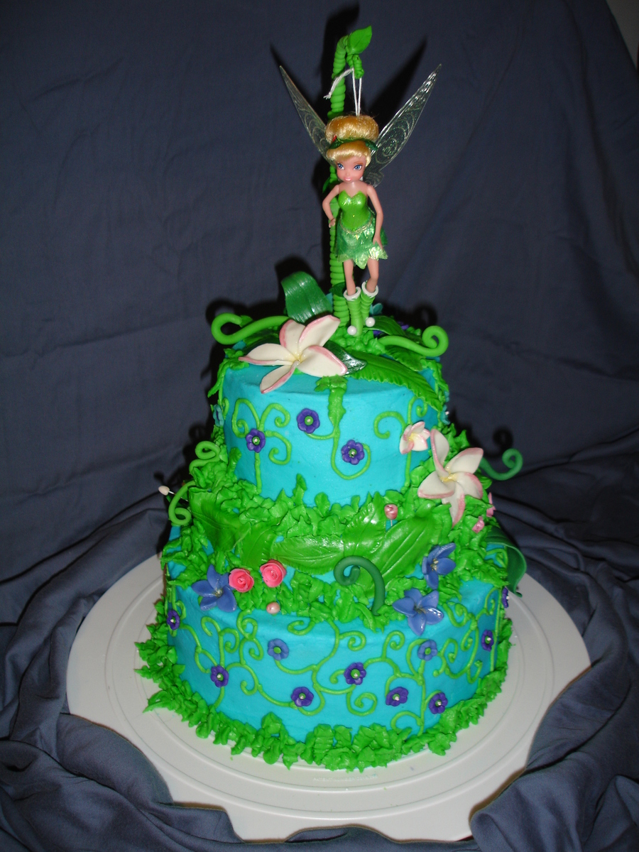 My nieces 6th bday cake. Vanilla with vanilla buttercream MMF accents. Rainbow colored on the inside. It was my first time making fondant flowers.