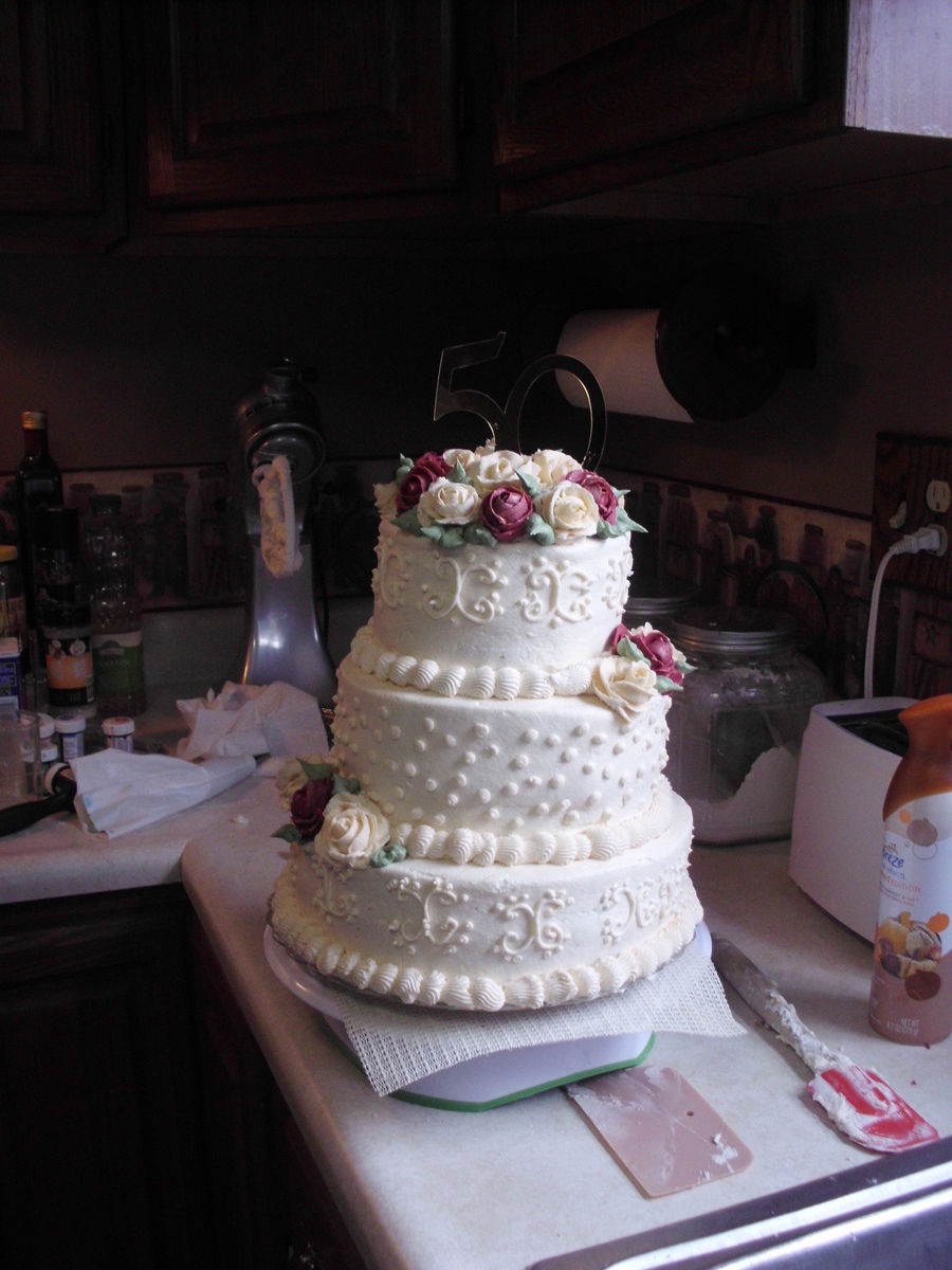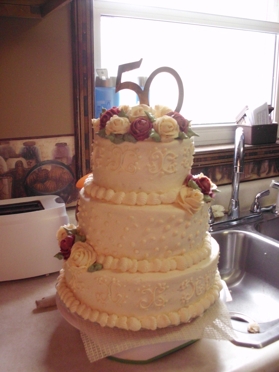 I made this cake for my parents 50th anniversary. I had never made a stacked cake before, or tried scrolls before. They loved it. Thanks for all the great ideas on this site.