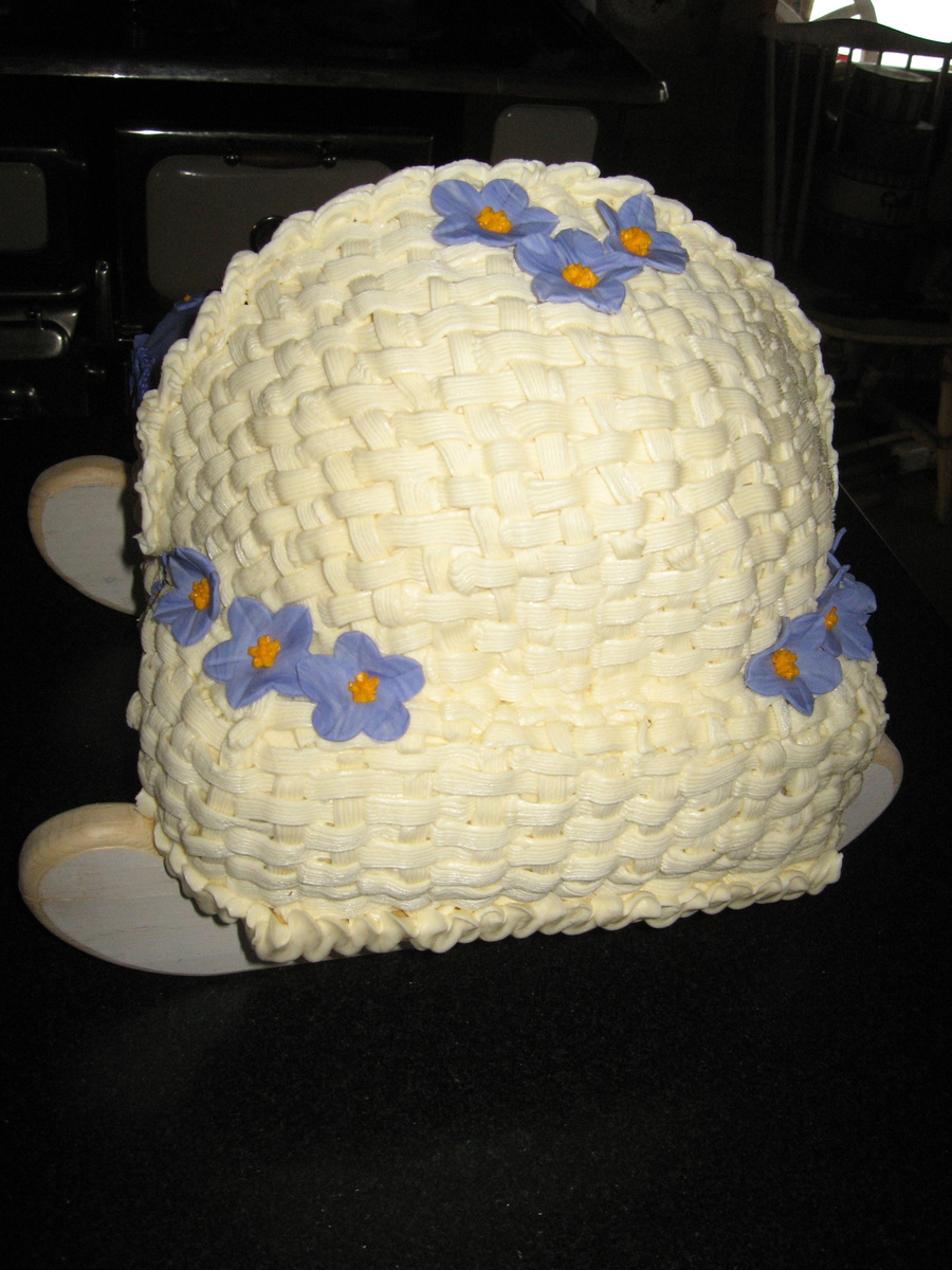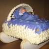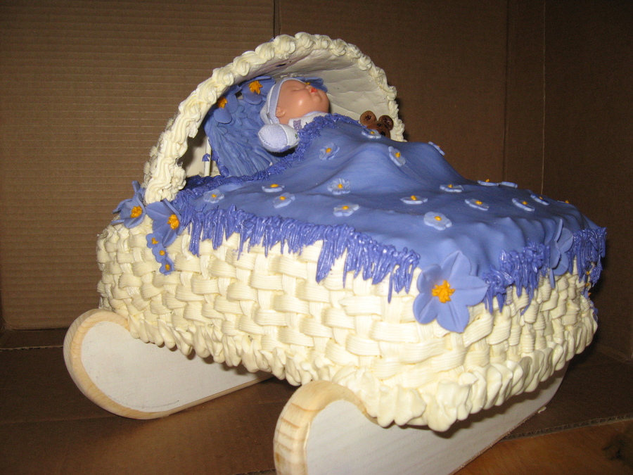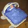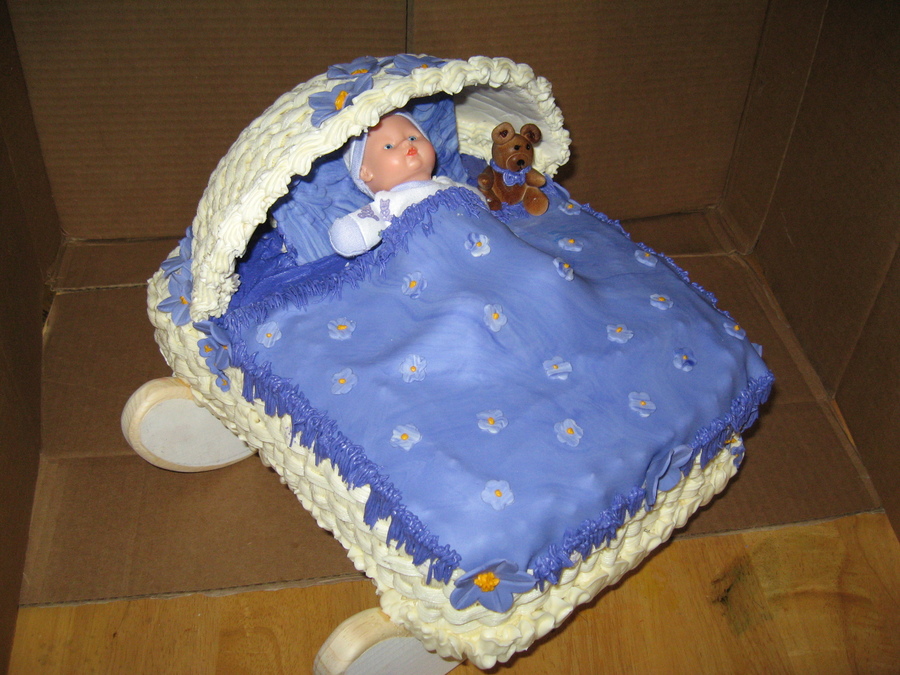 Chocolate and Vanilla cake W/ raspberry filling and raspberry buttercream. Fondant blanket, hood, and teddy bear.