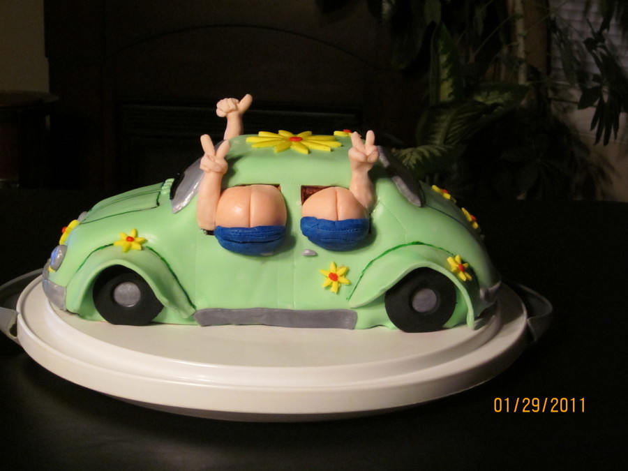 Yellow Cake/crumb coated in BC, and covered in fondant