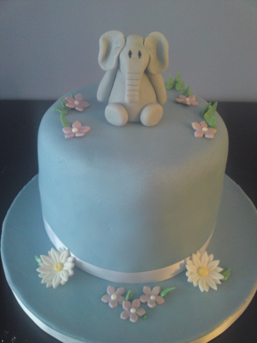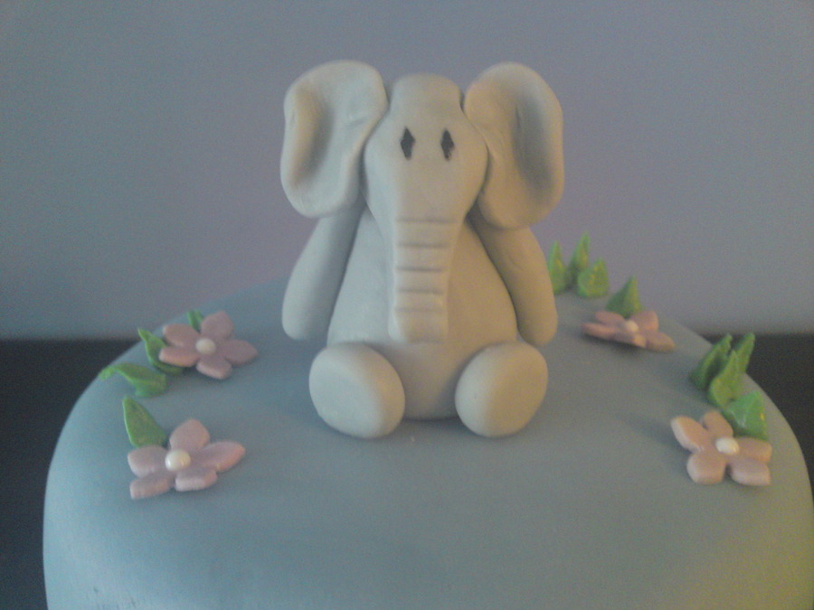 Fondant elephant. Cake is yellow sponge with vanilla pudding