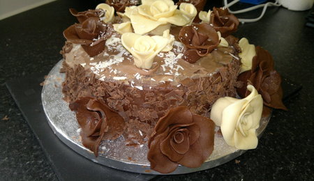 My first attempt at a topsy turvy cake in advance for Valentines Day. Bottom layer is Chocolate, second is Vanilla and Chocolate Chip. The cupcake on the top is strawberry and white chocolate chip. All covered in marshmallow frosting and then sugarpaste.