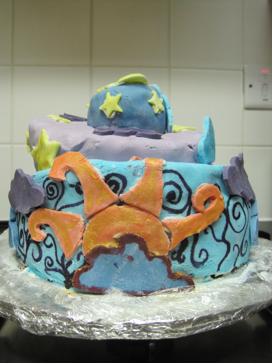 Topsy Turvy Sun, Moon And Stars Cake