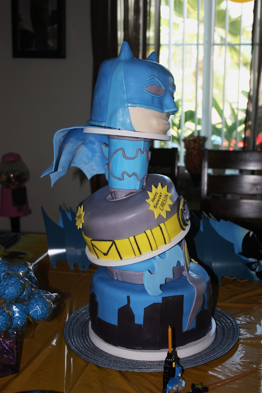 Cape, Arm Cuff and Boomarangs were gumpaste, the rest was fondant :) This was for my little guys 4th Birthday! Plus some cake pops in the background.