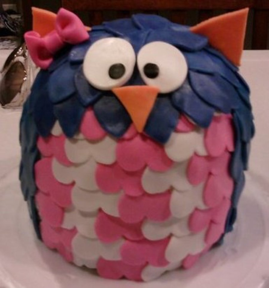 I love owls!! This cake is 2 layers of a 6" round and then half a sphere shape. all mmf