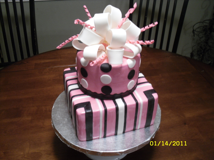 chocolate cake filled with whipped ganache, covered in ganache and MMF. TFL!