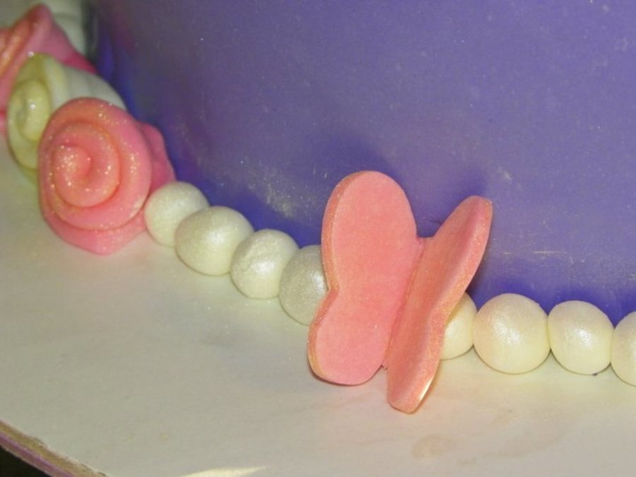 8" double vanilla with fresh banana buttercream bottom 6" double strawberry with strawberry cheesecake filling top is strawberry cupcake topped with vanilla BC. All MMF. Used pearl dust and gold luster
