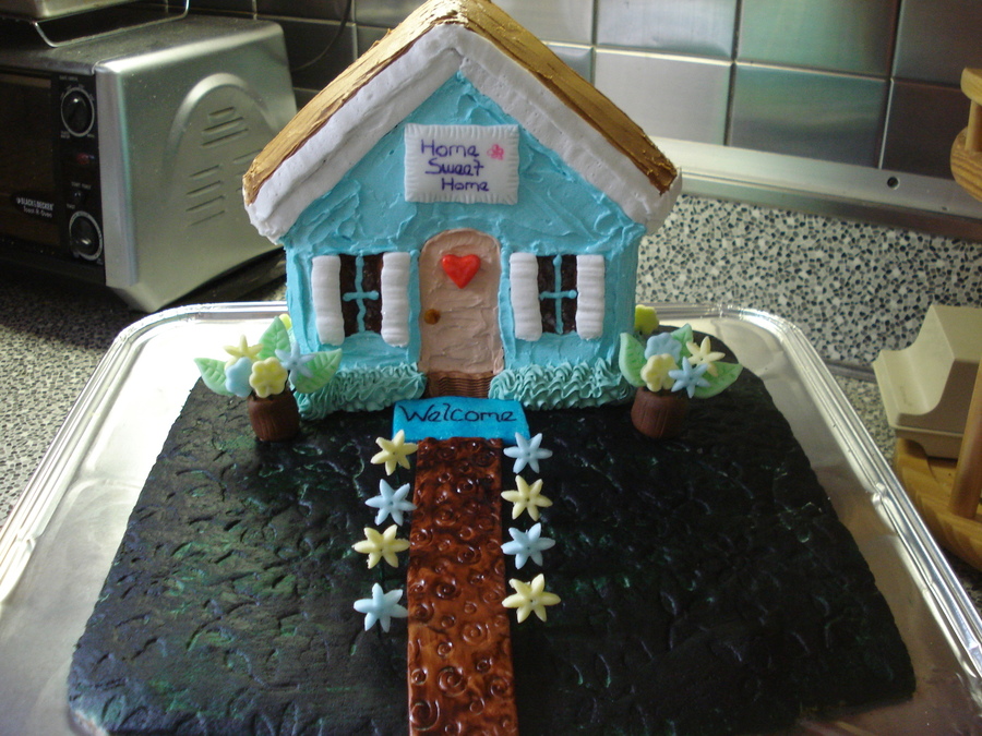 Made for a friend going through a difficult time and moving out on her own. Grass is a sugar cookie with an imprint, decorations are fondant and the cake is iced in various shades of buttercream.