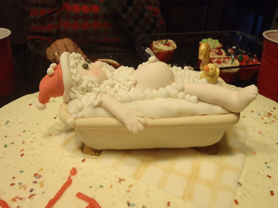 chocolate cake filled with ferrero rocher creme, and philadelphia frosting. Santa is made of gumpaste and fondant