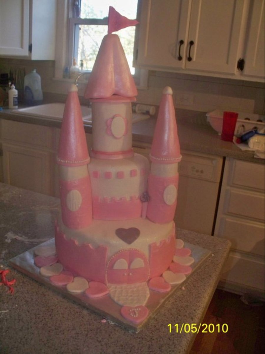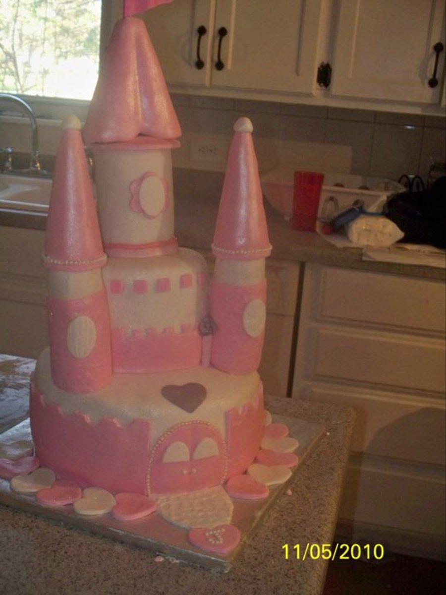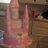 pink castle cake made with mmf, fresh strawberry bc and strawberry cake.