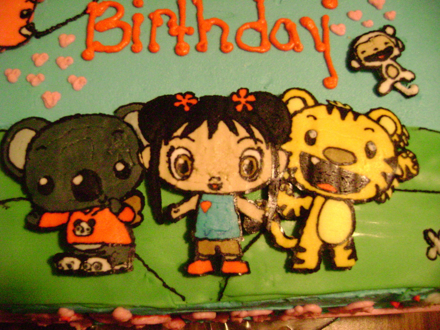 Used the buttercream transfer method, it came out really well for my first time and it was very easy to do. The cake batter is tye-dye which was also really easy and looked and tasted amazing. The green hills od course are mmf, what a fun cake to make and the little girl loved her cake :)