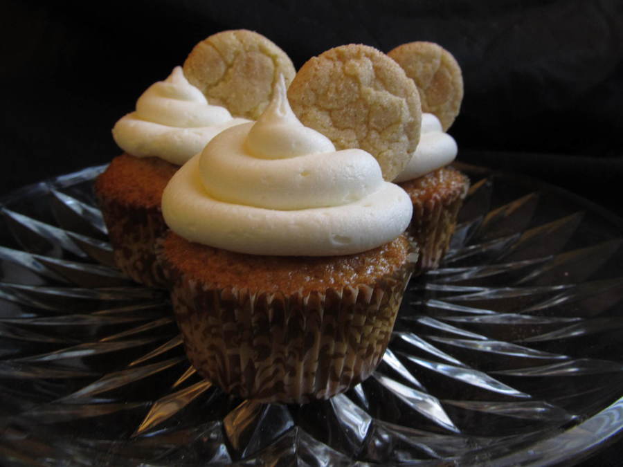 Snickerdoodle Cupcakes with buttercream icing. Garnished with a mini snickerdoodle.