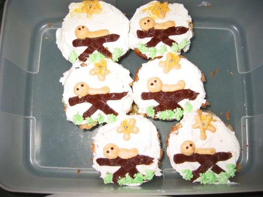 Here is a far away view of all of the cupcakes I made for the kids last night at my family Christmas get-together. They all sang "Happy Birthday to Jesus" and had a candle in each of them.