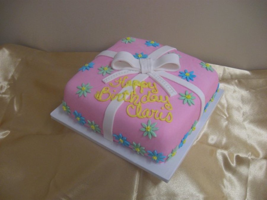 First time box and bow cake.