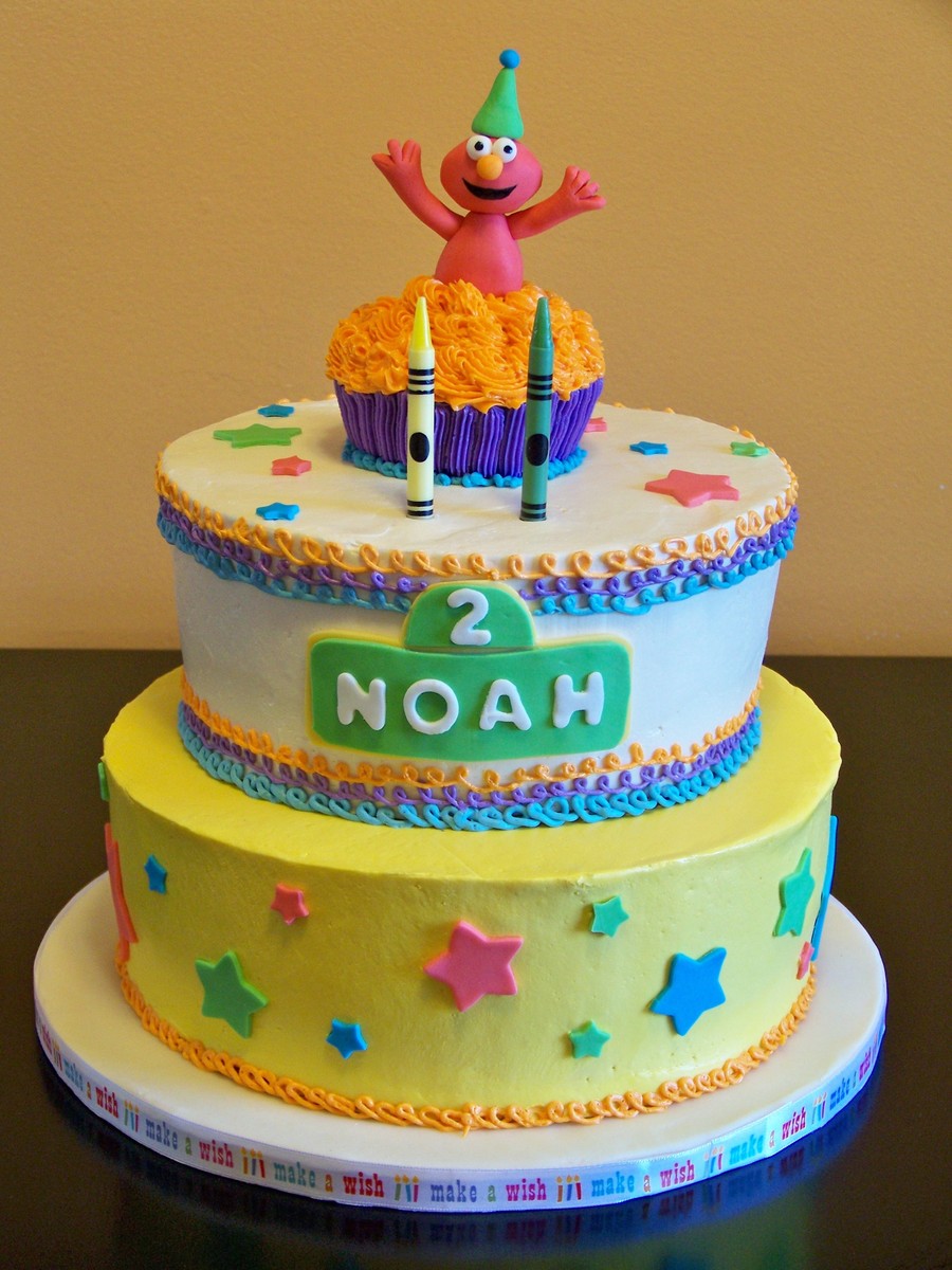 Fondant accents on buttercream - complete with Elmo's "crayon" scribbles. Crayons are candles. TFL!