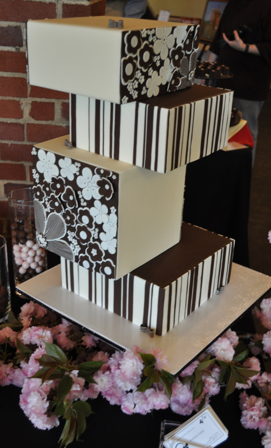 square cake dummies covered in white and chocolate fondant. Version of a cake in a book. I am sorry I can't remember the gals name that did the original of this. If anyone knows please post. Did this cake a while ago with a friend for a epilepsy display cake.