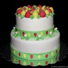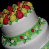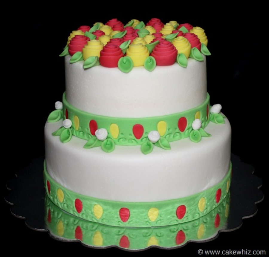 The roses and leaves in this cake were made with fondant. The border was designed using the Wilton embosser.