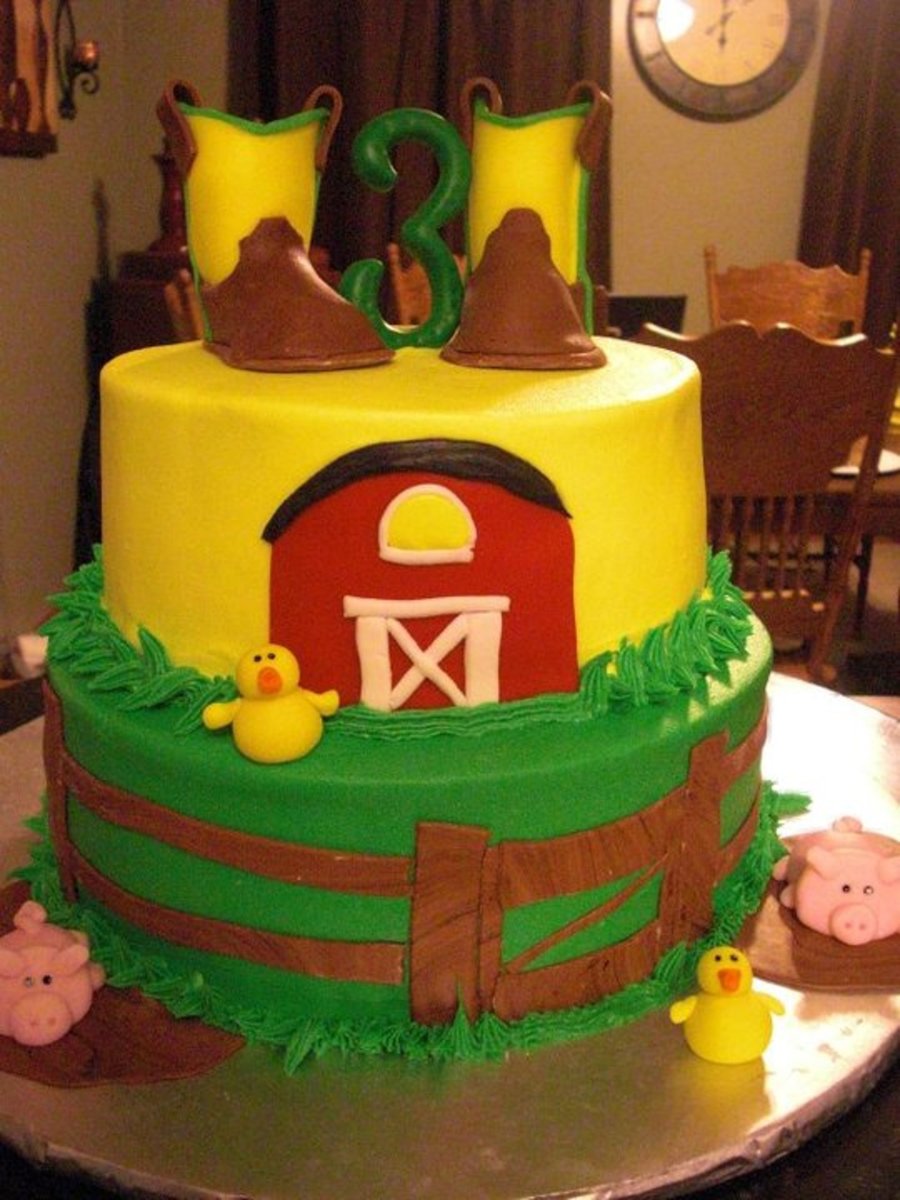 2 tier cake covered in buttercream, fondant details, fondant boots
