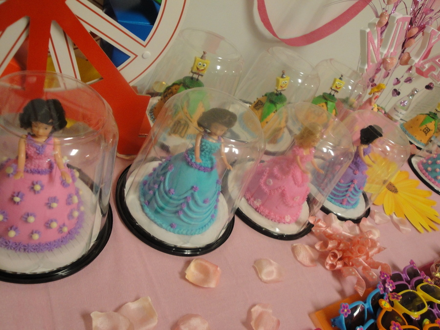 Mini Doll Cakes and Mini Spnge bob cakes..as goody bags for kids...done for my daughters 5th bday....
