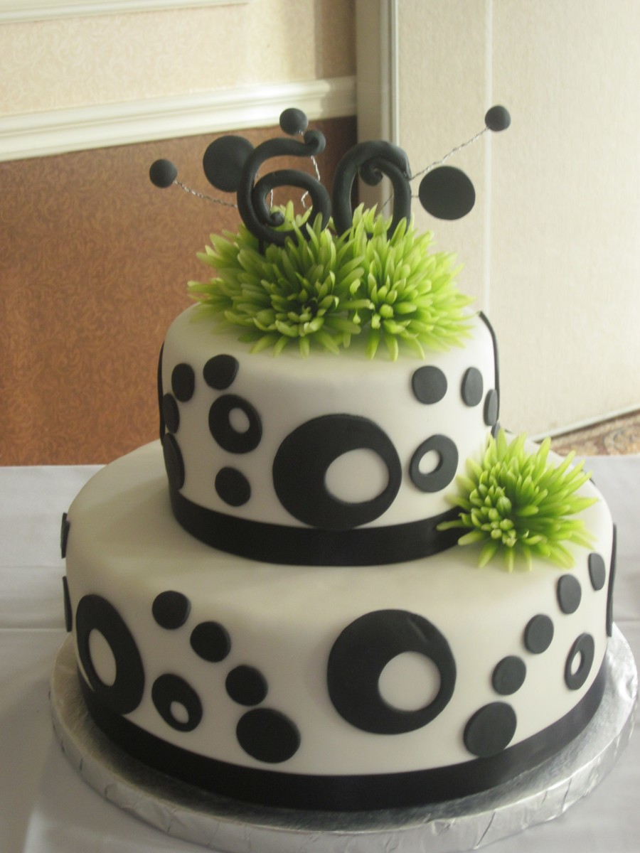 60th birthday celerbration. Cake is all fondant with gumpaste "60" and wire accents. 14" and 8" rounds. Im sorry, I dont know who orginally deigned this cake as if was emailed to me from a friend.