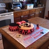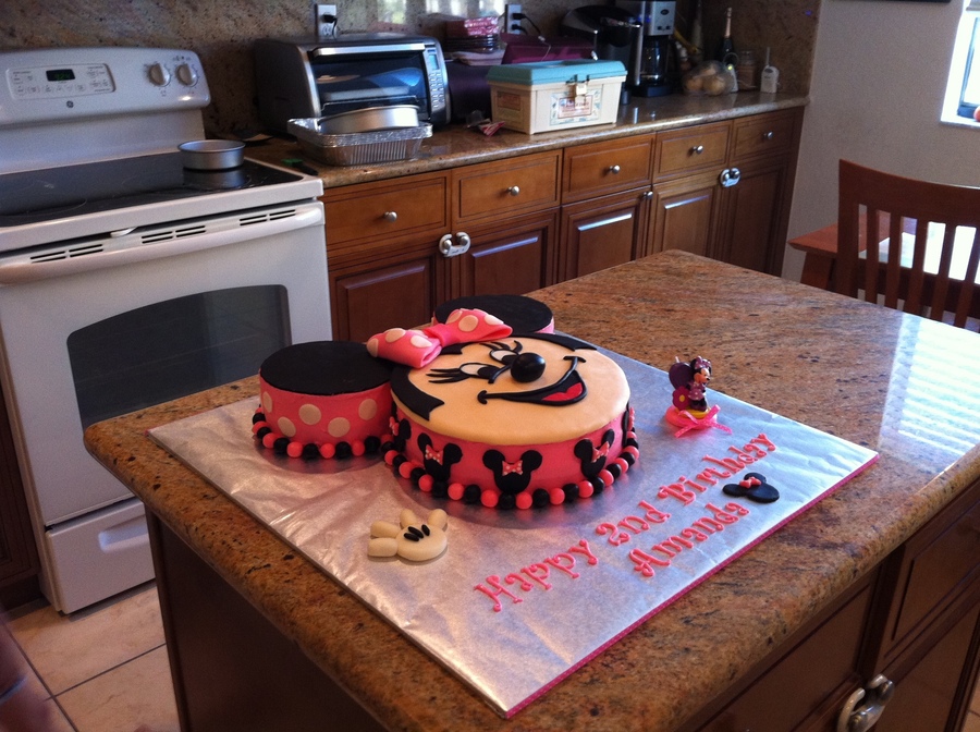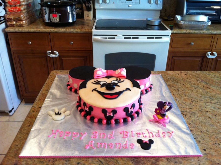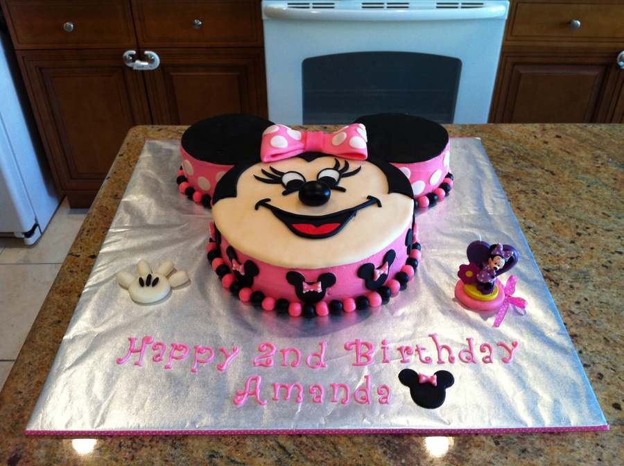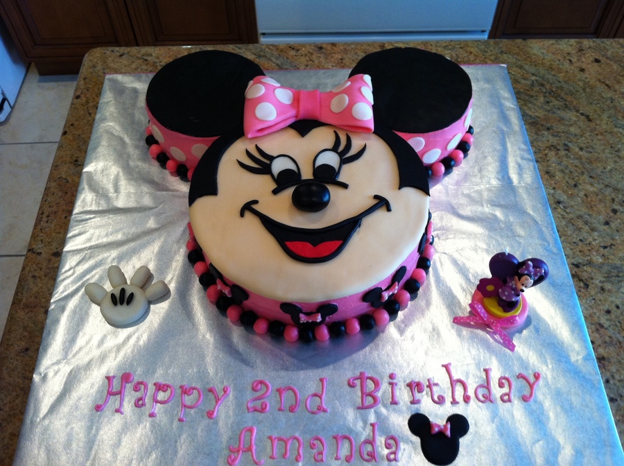 My daughter Amanda's 2nd Birthday cake - The 3rd cake I have ever made. The top is fondant and the sides are buttercream - all the decorations on the cake are fondant including the letters. The Minnie figure on the right is a candle (not fondant) :)