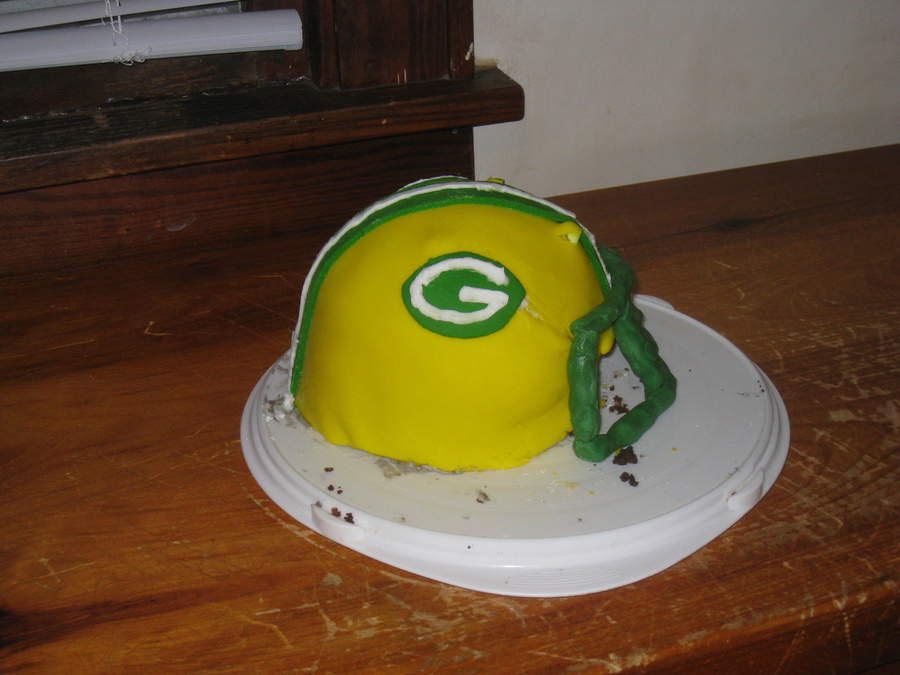Green Bay Packer helmet cake, my kids loved it but I think the proportions were off.