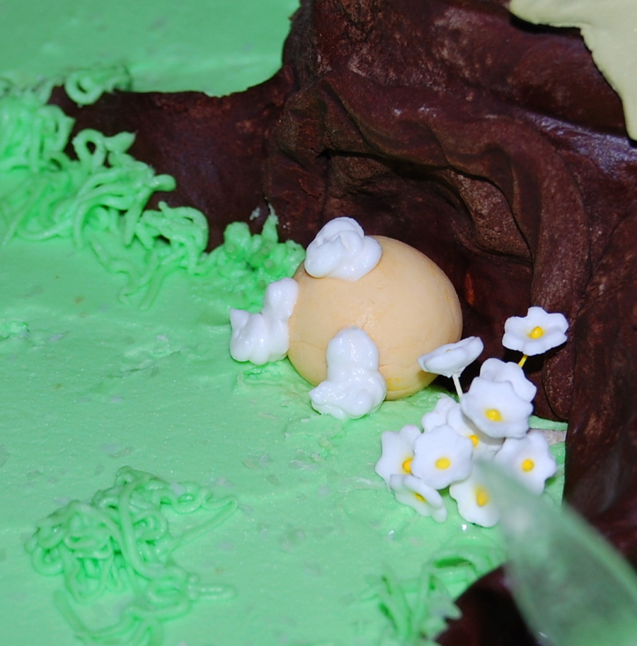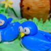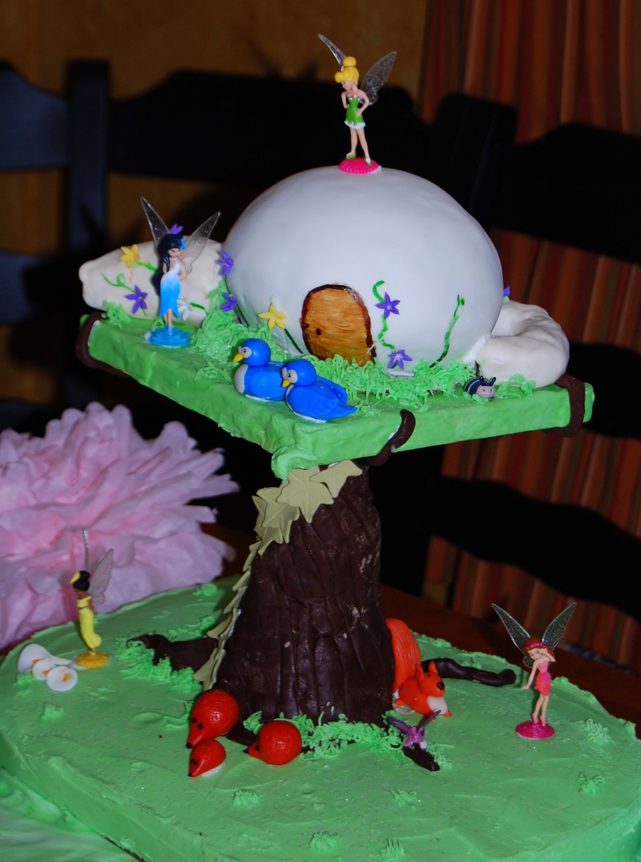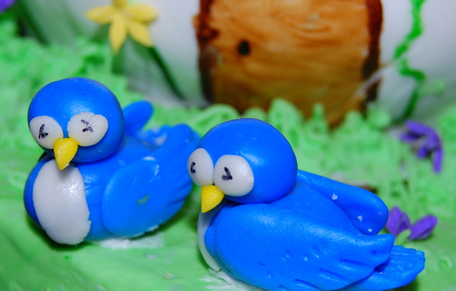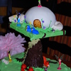 Birthday cake for my twins. Had a horrible time controlling the humidity in my home that day and it wrecked havoc on everything. Very unhappy with this cake but the kids loved it! Tree is rice krispies covered in modeling chocolate. Gumpaste and fondant accents.