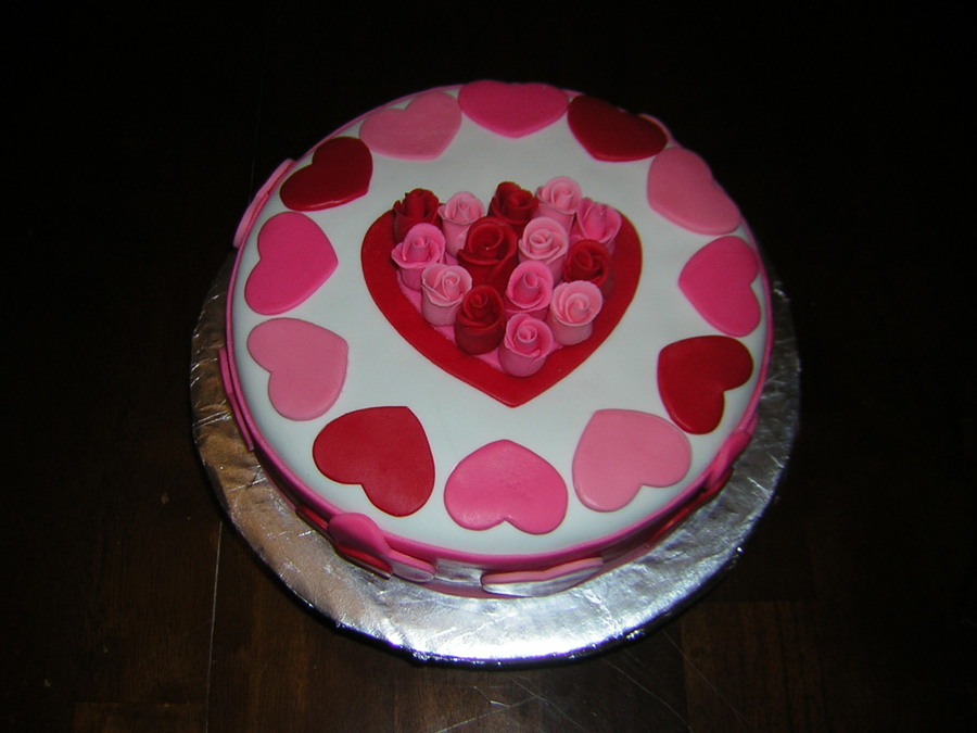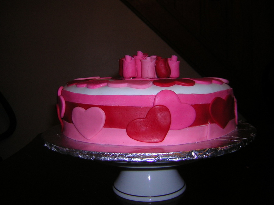 First timemaking fondant roses, I was so excited how they turned out. Made this cake for a Church Valentine Banquet.