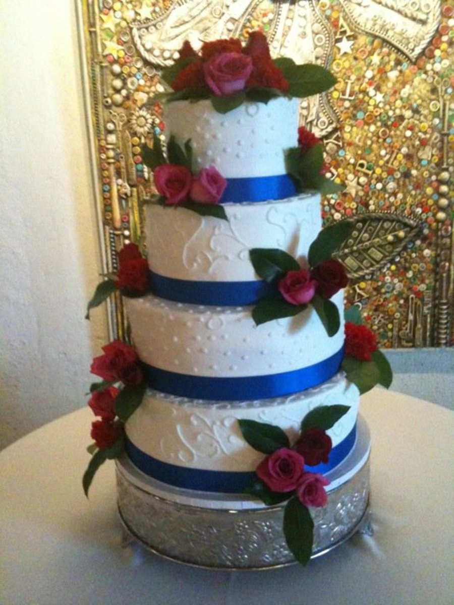 16, 14, 11, 8 in. tiers for a wedding this past weekend. I love the fresh flowers!