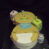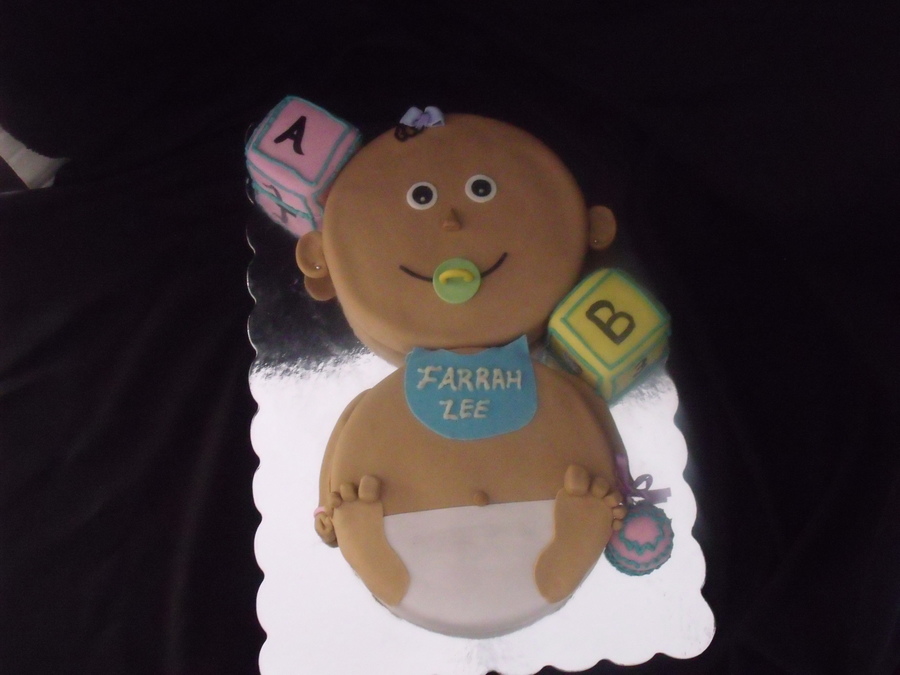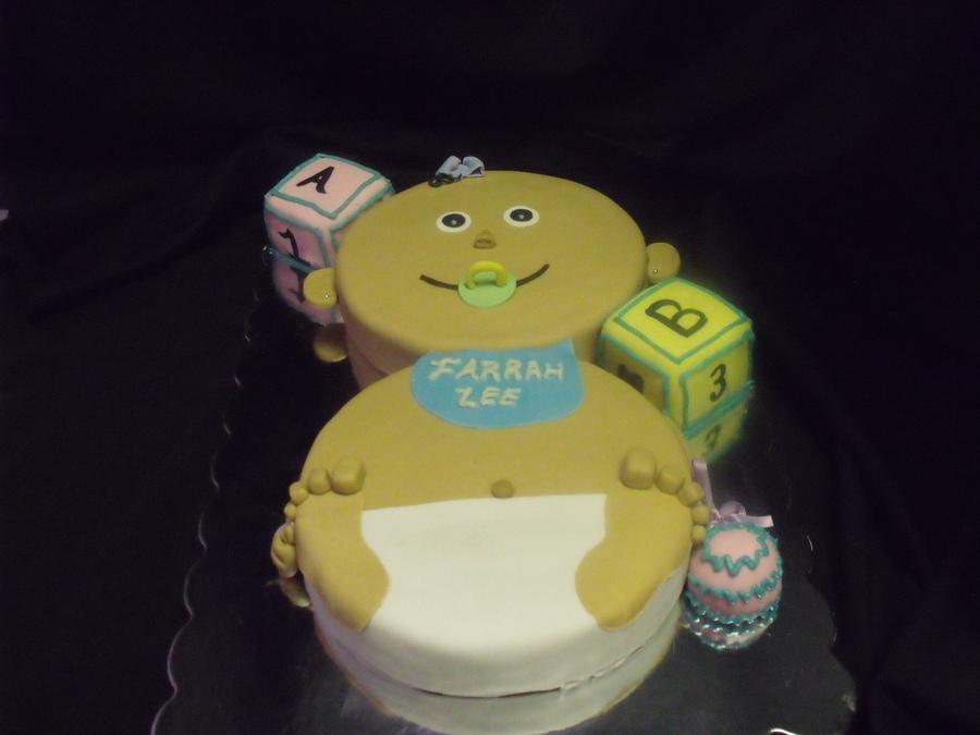 This is a baby shower cake I made from a request. 2 8" round cakes covered in fondant with gumpaste accessories. Baby blocks and Rattle are cake as well.