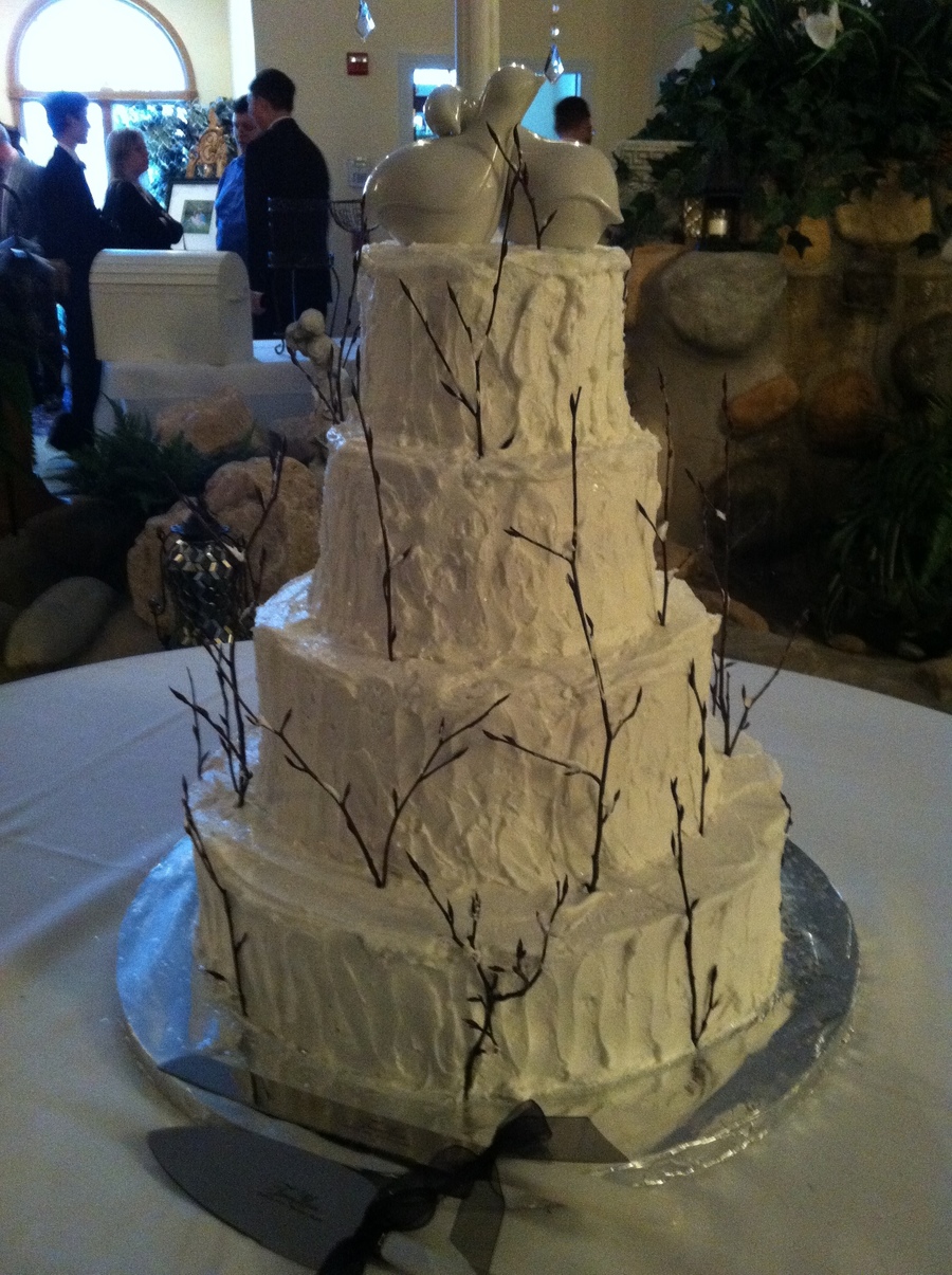 This was the second Wedding Cake I had made. It was for my niece. It is buttercream frosting with edible glitter sprinkled on it.