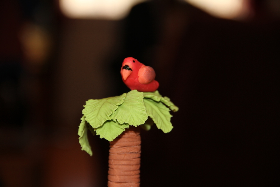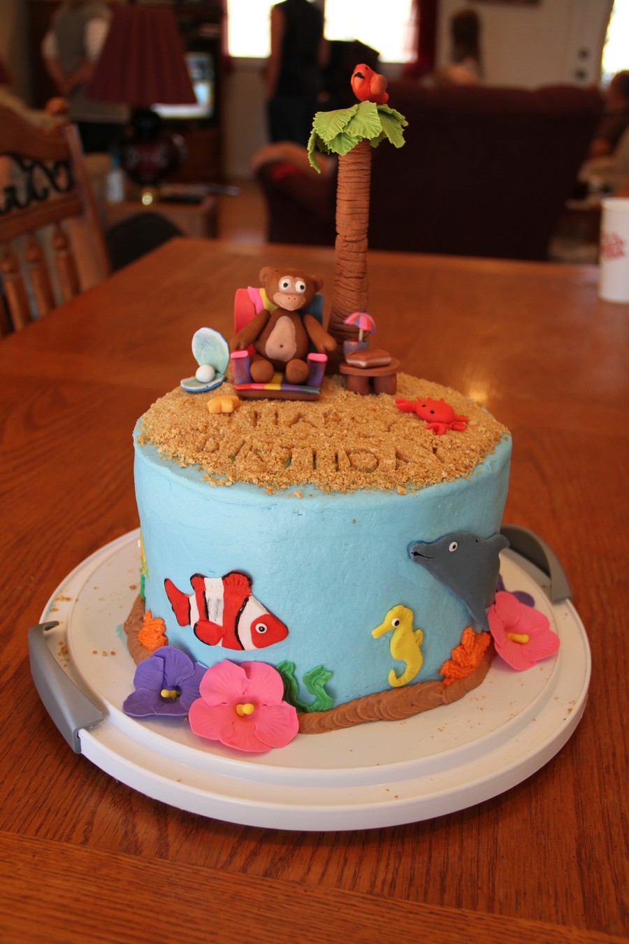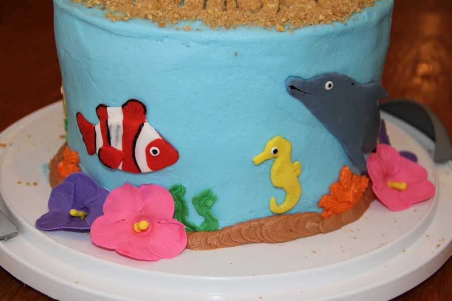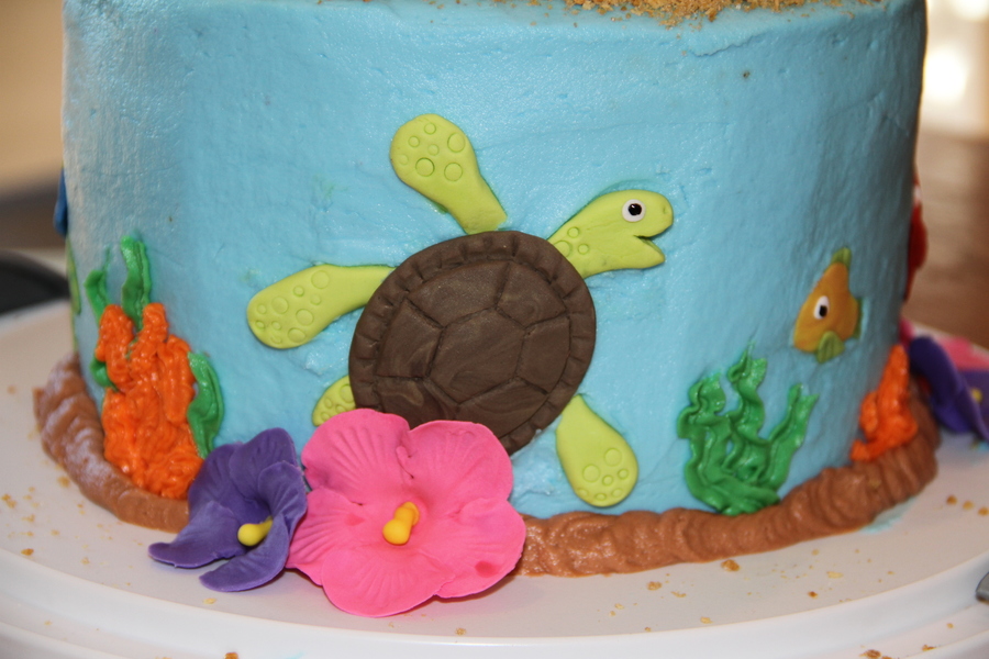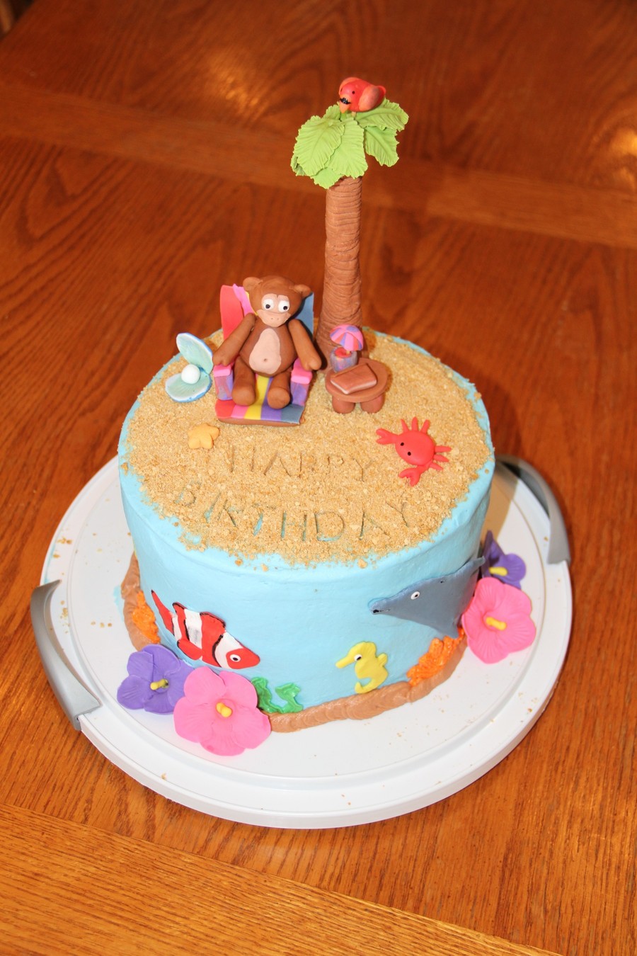 My niece asked for a Hawaiian cake with a monkey, bird, fish, flowers, and tree. This is what I came up with and she loved it! Chocolate chip cookie cake with oreo filling, vanilla buttercream and gumpaste/fondant figures. This was the first time I made anything other than flowers. My husband was a huge help!
