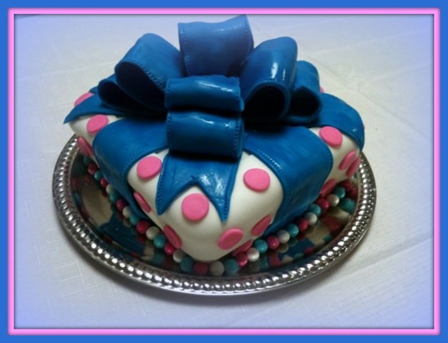 Present box, covered in Fondant with fondant polka dots and bows