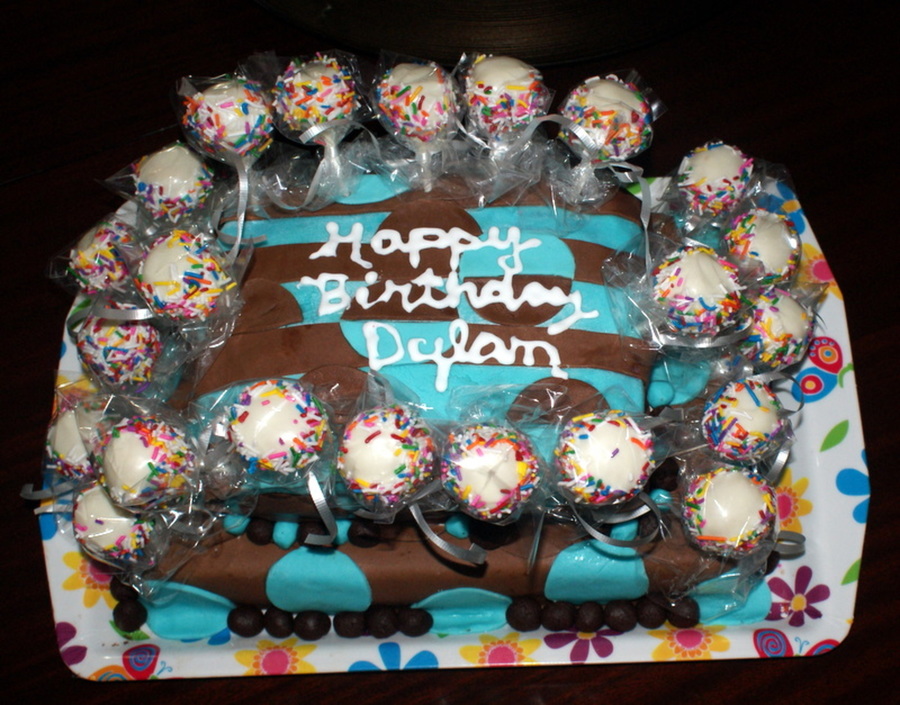 I decorated around this cake with cake pops. The cake pops were made with lemon cake and cream cheese for those who did not want too much sweetness.