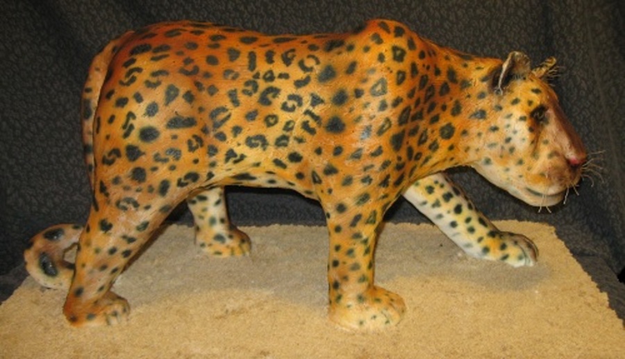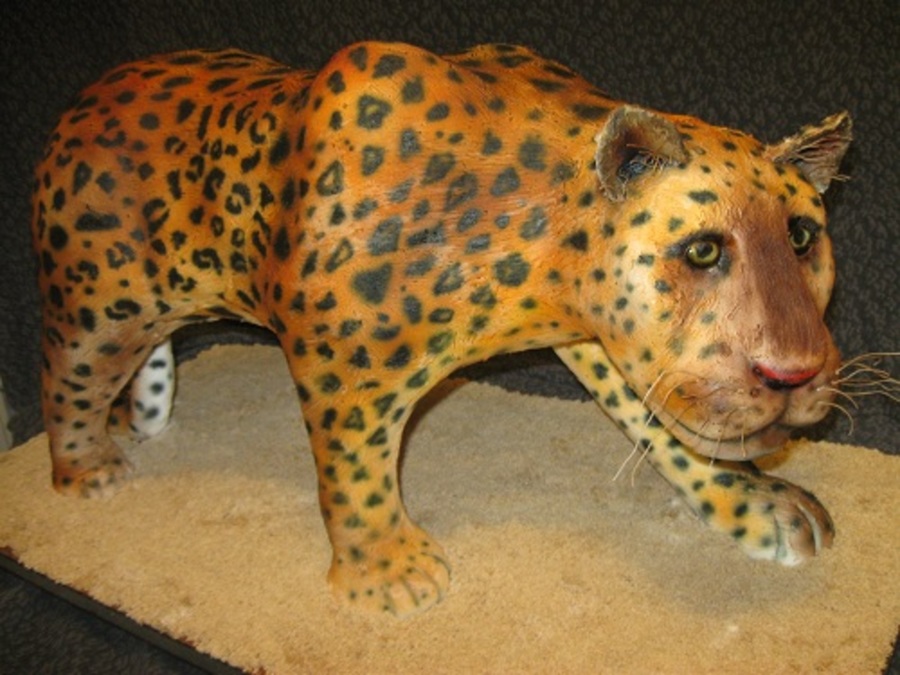 Sculpted leopard...measured 15.5" high and 30" long!! head and belly are rkt, the rest is cake...covered in fondant, lightly brushed on icing for texture, and then airbrushed. tfl!
