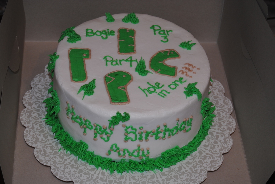 Chocolate cake, strawberry cake, with vanilla buttercream filling and icing. The theme was putt putt golf.