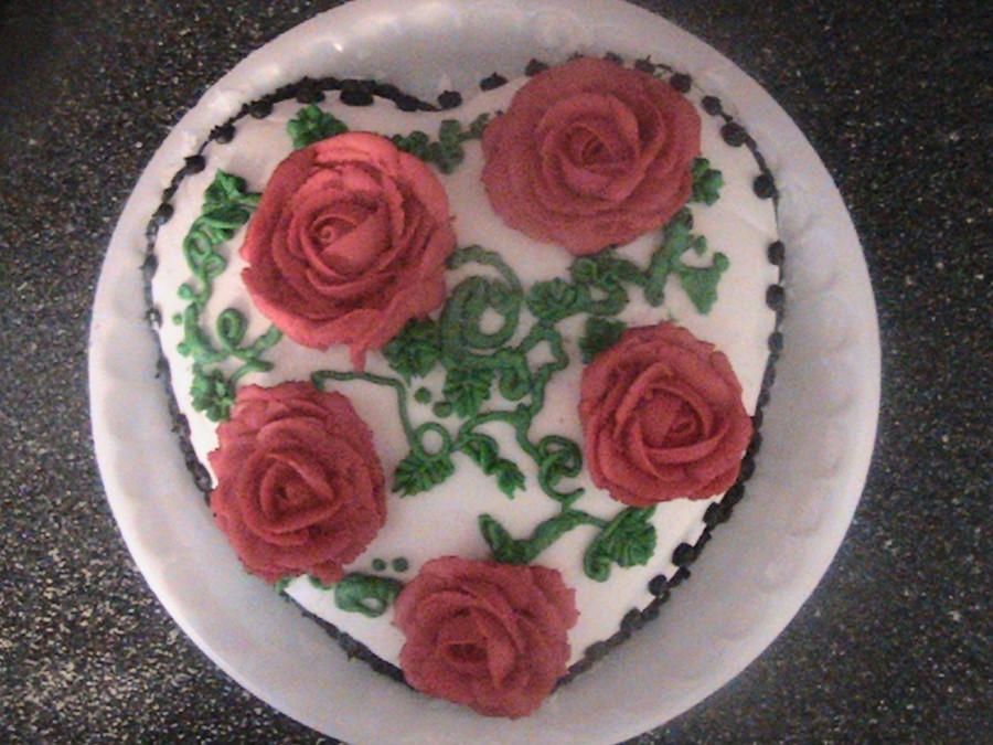 I did this as a birthday cake, but it works PERFECT for valentines day. It's all icing. Really fun, and it only took me 25 minutes to decorate (Not including baking time)