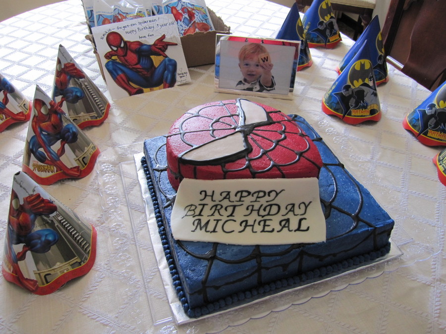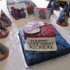 This was inspired by many of the other Spiderman cakes on this site. The bottom layer is yellow cake and the top chocolate. I used gumpaste for the eyes and plaque. For the outline around the eyes and web I used royal icing. The birthday boy was thrilled.