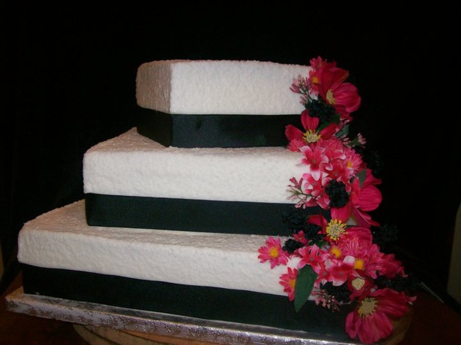 Sprayed on texture. all buttercream. ribbons are fabric flowers are silk.