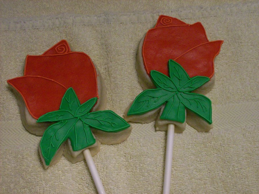 Rose Sugar Cookies decorated in MMF and detailed in Royal Icing.