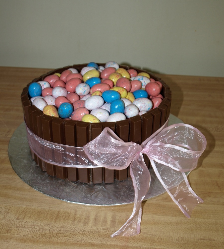 Easter egg cake. Inside: red velvet cake