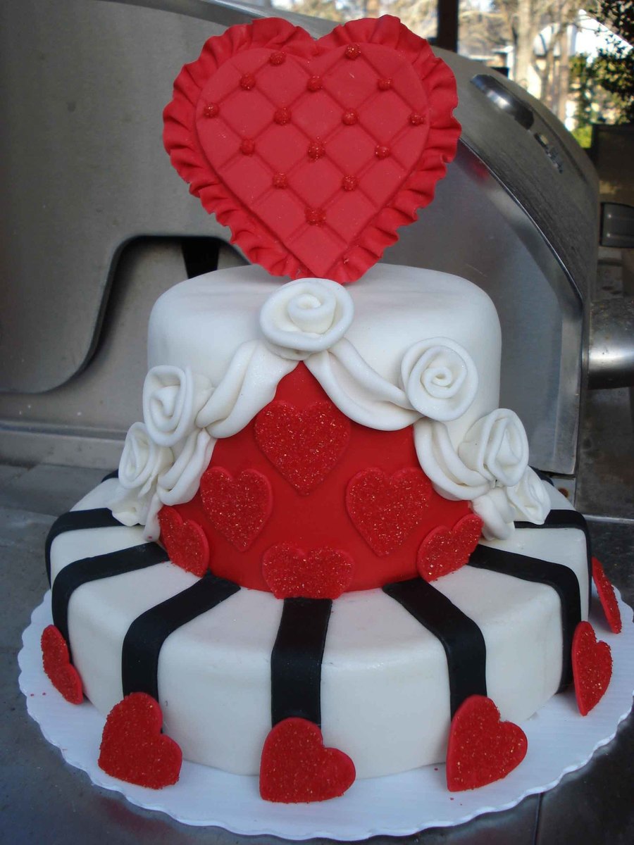 Taken from the 2011 Wilton Yearbook - I've loved this cake from the first time I saw it in the yearbook. Changed the size of the stripes and the distance apart. Made extra hearts around the base and secured with piping gel.