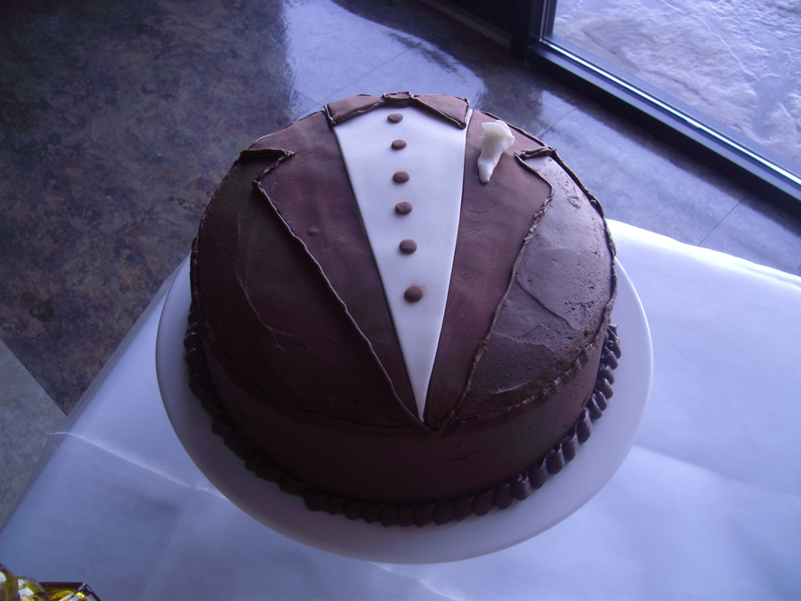 Chocolate cake; fondant shirt and lapel; chocolate butter cream frosting