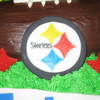 Football is Rice Krispie Treat with Choc Icing - Accents are Fondant