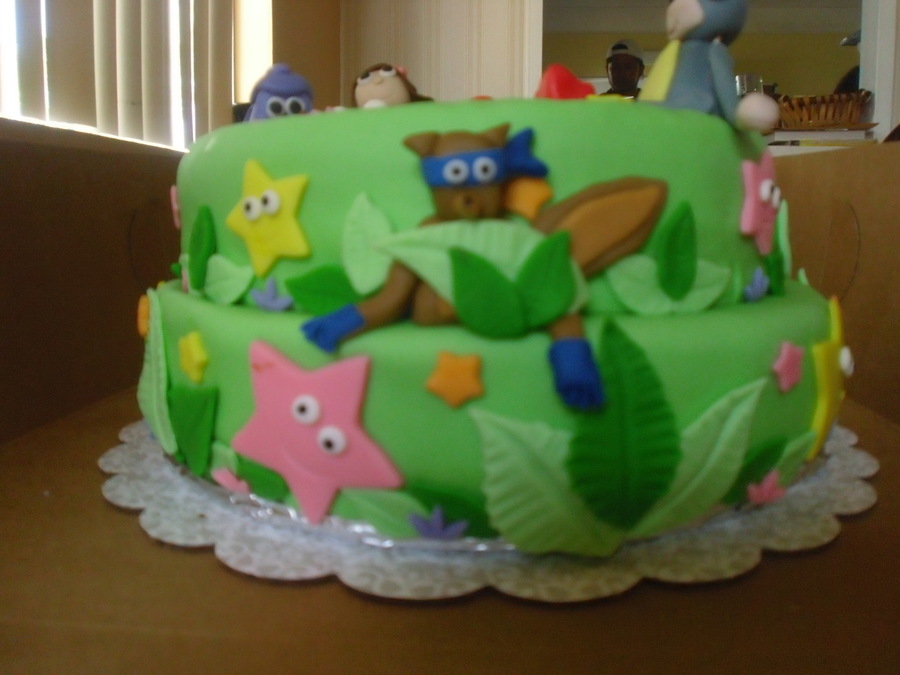 This is one of the first cakes I created. Plus the first time making fondant figures.